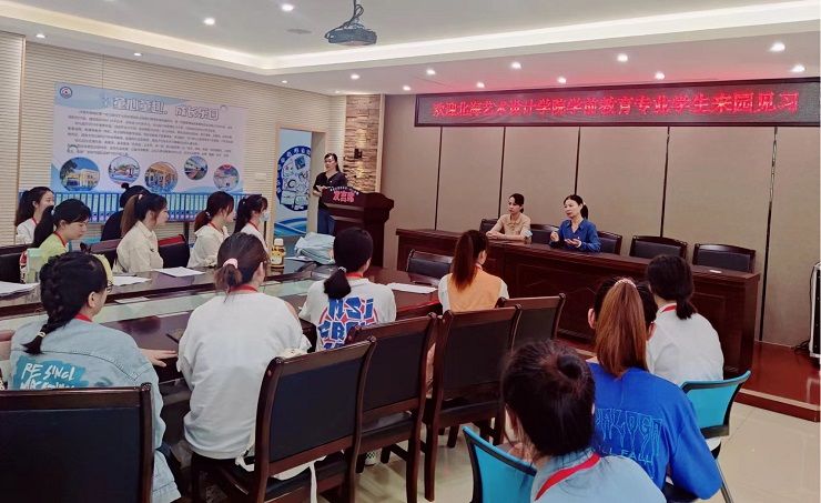 见习第一天,银海区第二幼儿园刘园长、海城区第一幼儿园罗园长分别对见习生的到来表示热烈欢迎,同时对幼儿园的基本情况、工作日常和注意事项等进行了培训指导,对全体见习提出学习的要求:多听、多看、多问、多学习的态度,积极融入教育见习当中,并祝愿见习生在本次教育见习能够有所收获。