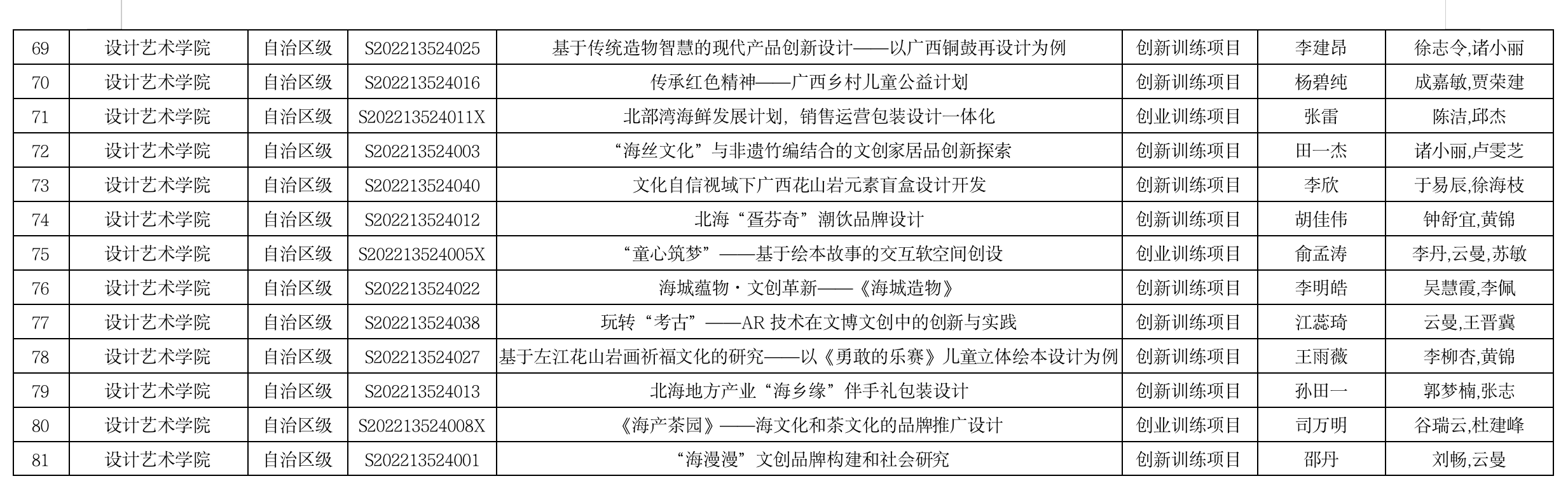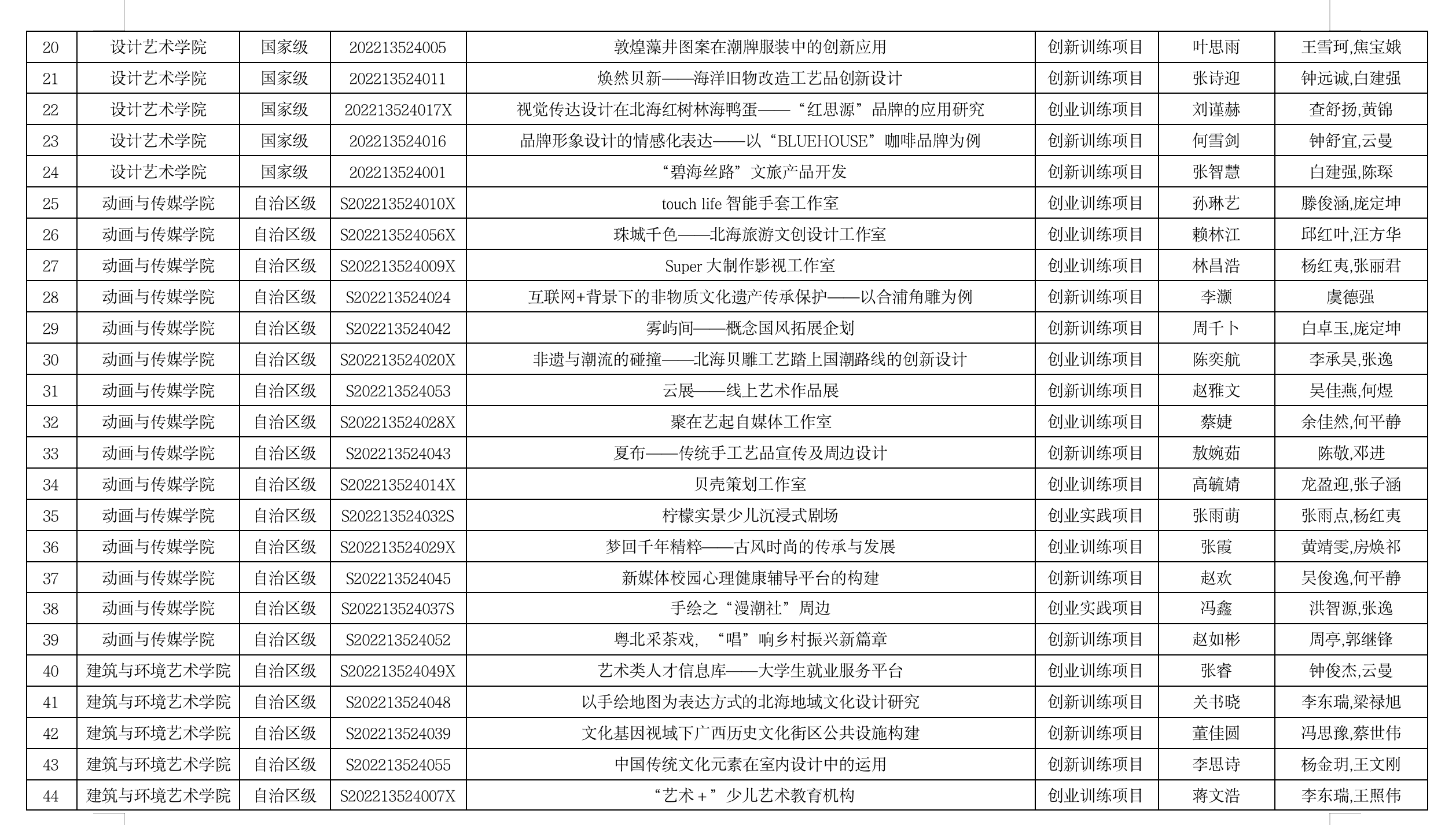 4.北海艺术设计学院大学生创新创业训练计划项目中期检查汇总表