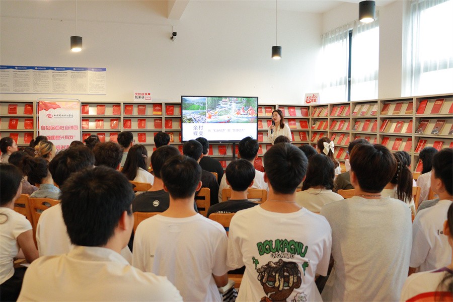 为深入学习宣传贯彻习近平新时代中国特色社会主义思想和党的二十大精神,10月18日下午,自治区百姓宣讲团“强国复兴有我”主题宣讲活动(北海市专场)在我校图书馆举行。