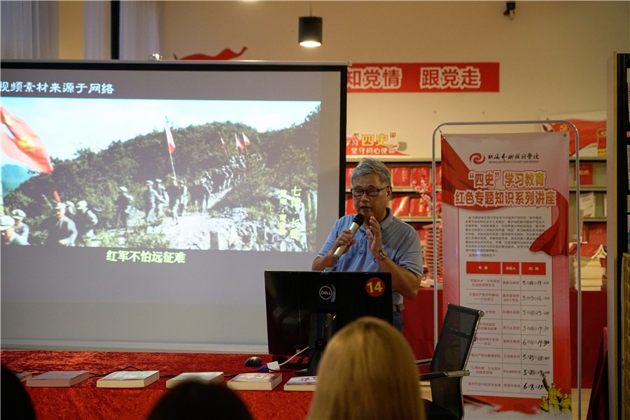 021年6月1日下午,学校图书馆开展“不忘初心学党史”系列讲座活动,这是“不忘初心学党史”系列讲座的第四场,由图书馆副馆长王作先主持,特邀马克思主义学院院长姜献生教授主讲。图书馆全体人员参加了此次活动。