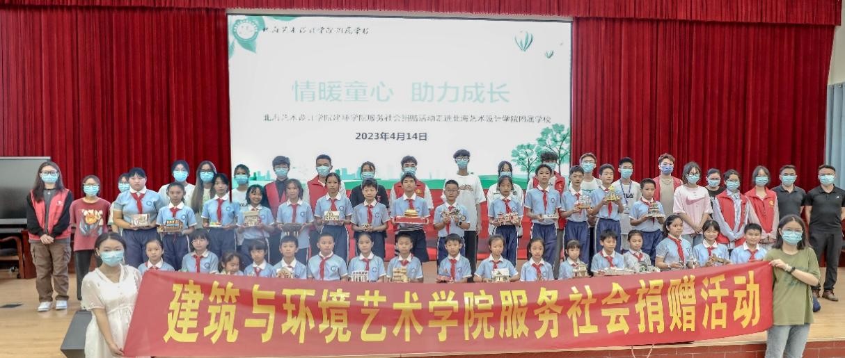 恰同学少年,风华正茂。少年身上承载着国家复兴,民族富强的重任,少年强则国强,少年兴则国兴。2023年4月14日,建筑与环境艺术学院到北海艺术设计学院附属学校组织开展服务社会捐赠活动。