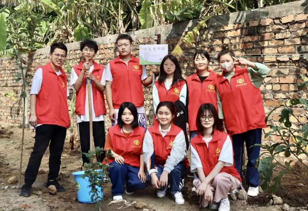 整个现场呈现出一片热火朝天的景象,大家种下了几十棵小树苗。