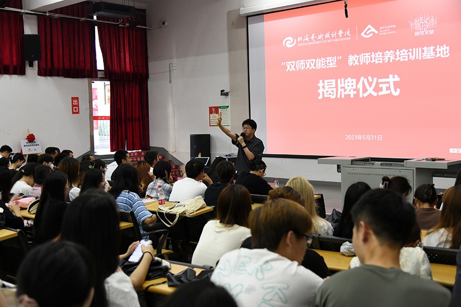 首先进行了我校与筑梦文创共建“双师双能型”教师培养培训基地的揭牌仪式,借此共建机会,加强“双师双能型”教师队伍建设,进一步提升应用型人才培养质量,增强服务地方经济社会发展能力