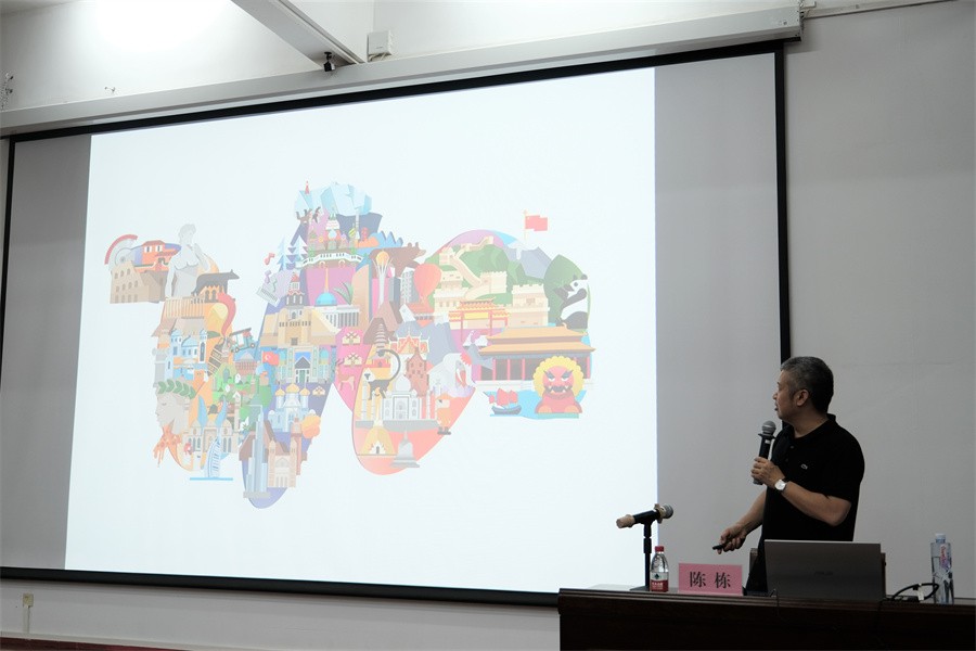 陈栋教授还通过其自身的各种工作经验,向现场师生传授了在实际工作岗位上应对设计任务的有效做法。他表示,面对甲方顾客或公司的时候要学会投其所好,尽量满足要求,他强调在创作设计时,要做到降材升质,才能实现市场价值。当面对甲方顾客不同的喜好时,如何选择和取舍设计,需要在工作时认真考量,而更为重要的是要在平时注重积累素材,才能在创作时应对自如。为此,他表示读书、游历、分享这三者是成为优秀设计师的重要条件,而设计最让人着迷的在于:解析常态、探寻未知;拓展自己知识的边界,远离已知的舒适区。他鼓励同学们要做到在创业时体味感悟,于工作之外修炼内功。