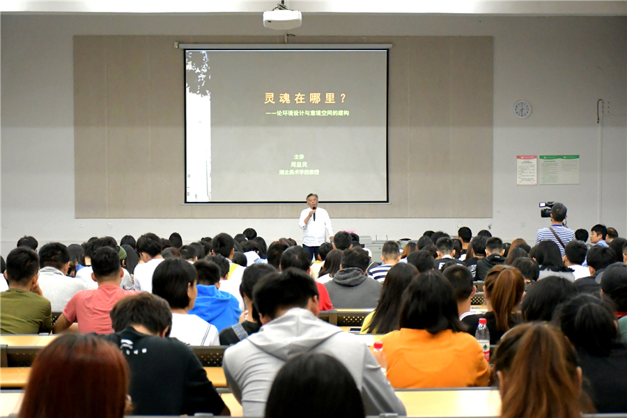 2019年11月15日晚7点30分在西校区公德楼107,来自湖北美术学院的周益民教授为我校师生带来了一场题为《灵魂在哪里?——论环境设计与意境空间的建构》的讲座,现场坐无虚席。本次讲座由我校环境艺术学院常务副院长王照伟主持。