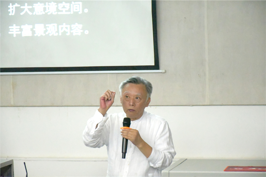 周教授指出,意境空间的建构不仅需要设计师掌握先进的科学方法和设计技能,更离不开设计师自身深厚的文化底蕴和艺术修养。他告诉同学们成为优秀的环境设计师,不仅要掌握设计技能,更要提升自身的文化涵养和人文底蕴。