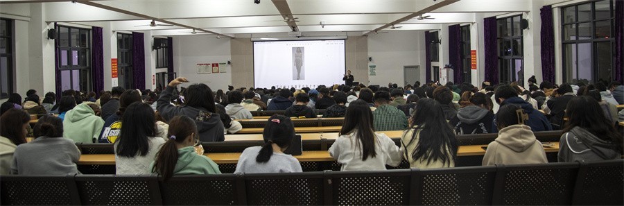 张树新教授表示自己一生中所要做的三件事——美术、书法、武术。谈及武术和书法,张教授以自身的人生故事为引进行讲述,引起了现场师生浓厚的兴趣。他从武术动作出发阐述设计画面,并表示武术和绘画是相通的,武术中的呼吸技巧与绘画凝神相结合,会使绘画更具灵性。张树新教授表示,中国绘画的最高境界是空灵,他还从中西方的信仰说明中指出,它们都具有向上挺拔的感觉,使人更加具有精神气质。因此,同学们在创作时,应该努力做到将自身的精神气质融入绘画中,更好地体现空灵感。
