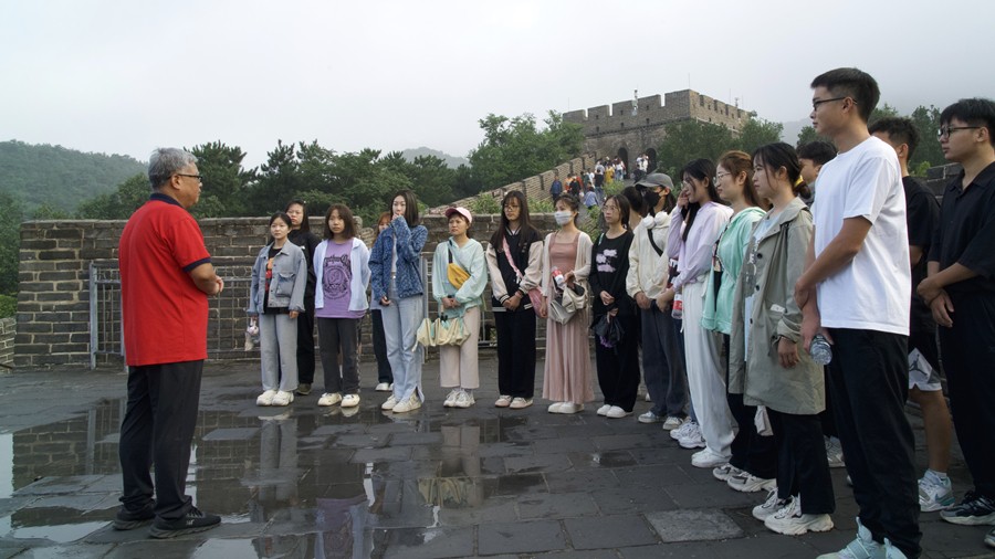 中国万里长城的珍贵价值不仅体现在物质层面,还体现精神层面。长城上,马克思主义学院院长姜献生教授、韦邕青老师现场系统详细地讲解了长城的历史、建筑、军事、文化等内容,激发提升了学生的文化自信和民族自豪感,并耐心回答了学生们提出的问题。现场氛围活跃,参与度极高。