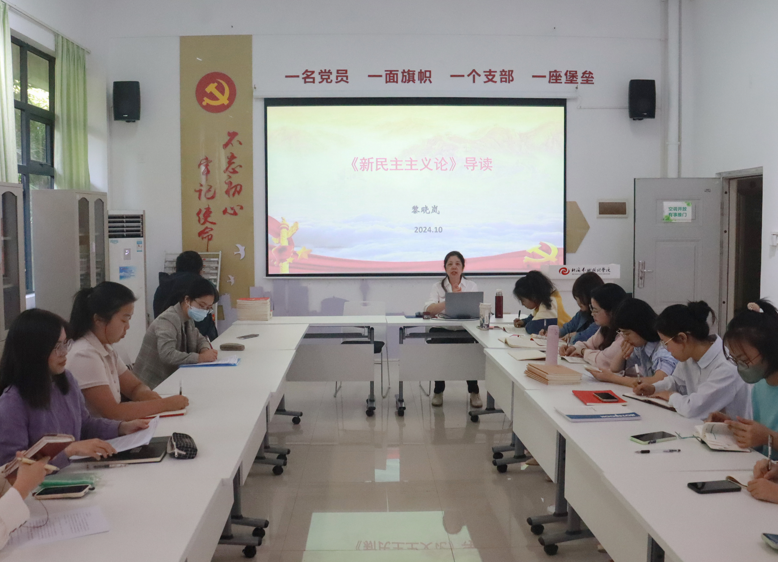 10月25日下午15:30,马克思主义经典著作导读系列活动第四讲在西校区行政楼103如期而来,由黎晓岚教授主讲《新民主主义论》,我院副院长罗秋梅主持,学院全体中青年教师参加。