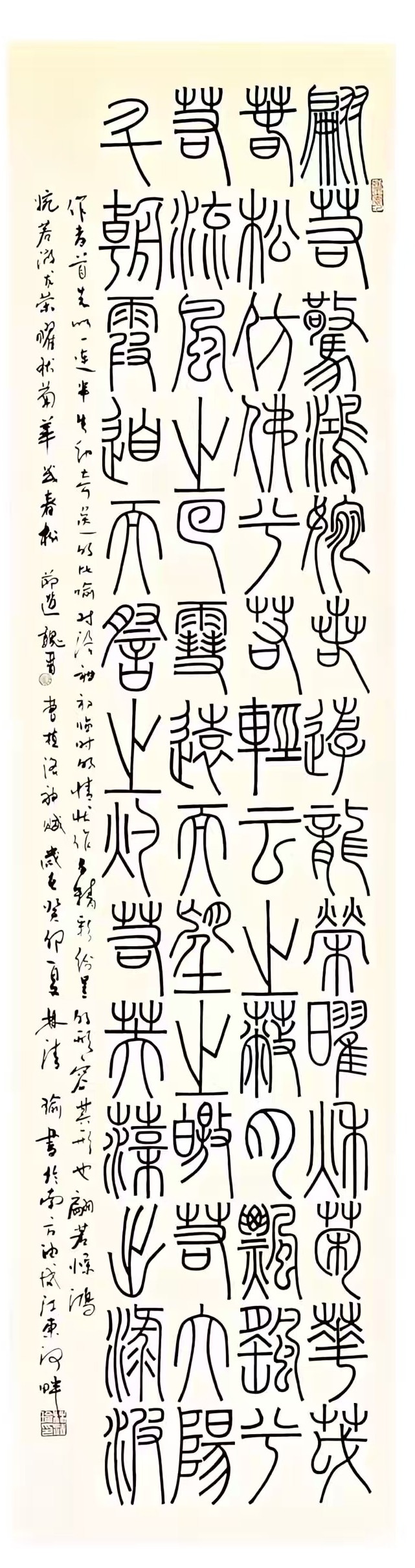 创作理念上,她秉持“古法为骨,己意点睛”,以“五步临创法”(精准摹写→意临变形→解构重组→反向书写→情感投射)深耕传统与创新结合,其铁线篆作品在市级展览中崭露头角,收获“耐心、坚持、突破”的成长感悟。