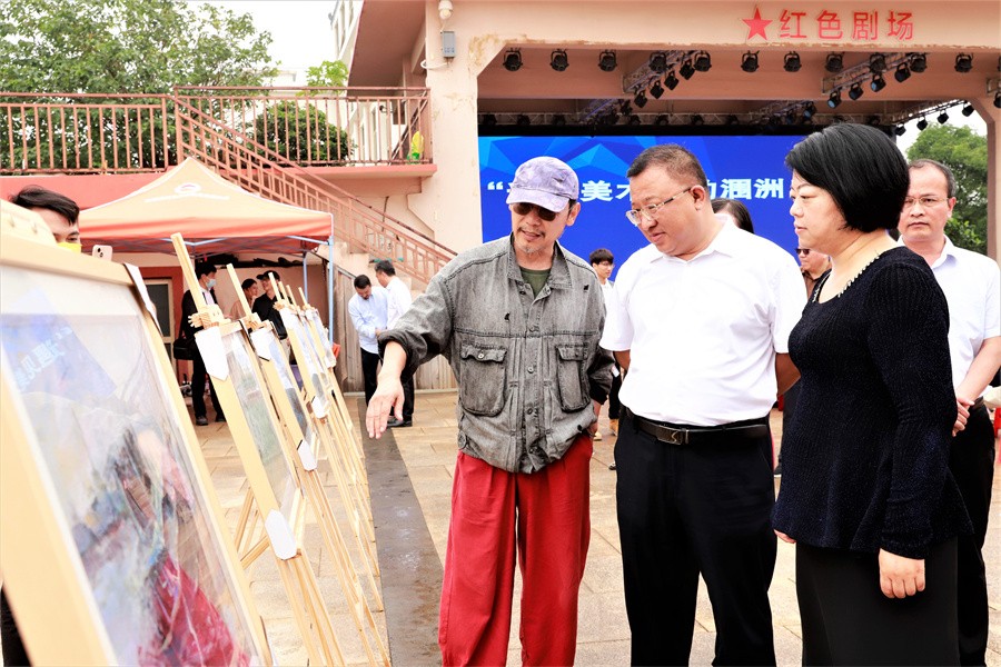 会后,双方领导一同参观“遇见美术里的涠洲岛”画展。
