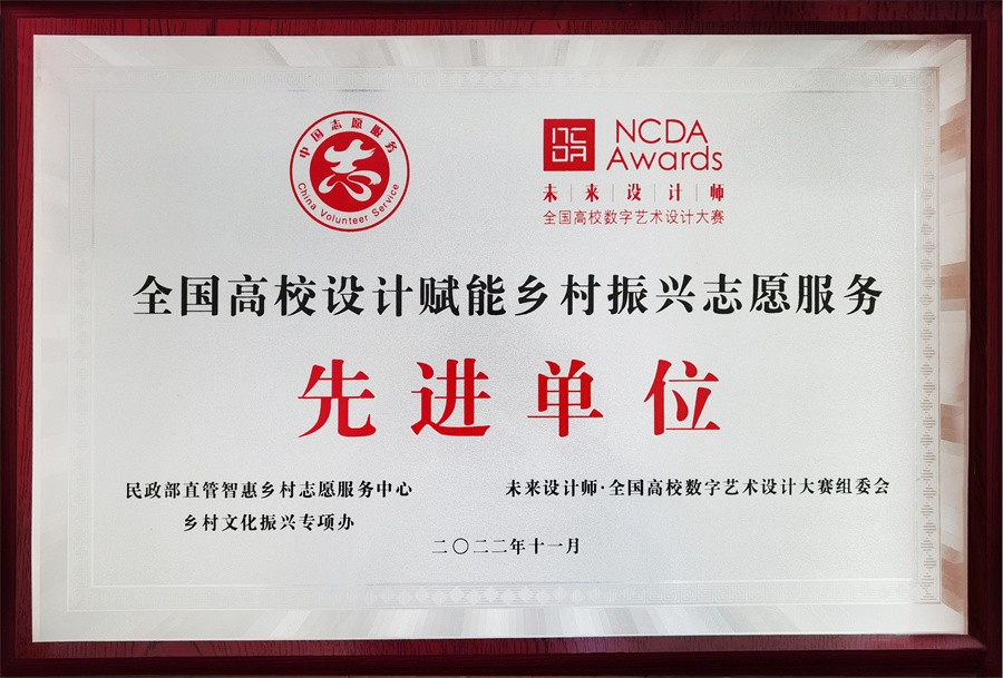 未来设计师NCDA大赛设立“乡村振兴”赛事,旨在鼓励高校师生开展设计赋能乡村振兴创新实践,积极投身乡村振兴志愿服务。一直以来,我校积极开展设计赋能乡村振兴创新实践,投身乡村振兴志愿服务等,动员广大师生以“设计为人民服务”结合专业积极开展乡村振兴的设计创作。我校向大赛提交的设计赋能乡村振兴创新案例也已收录至案例集完成出版,并在各大媒体上进行报道。经过组委会与智惠乡村志愿服务中心的审定,学校从第十届大赛1513所参赛高校中脱颖而出,被授予“全国高校设计赋能乡村振兴先进单位”称号,全国共有34所高校获此殊荣。
