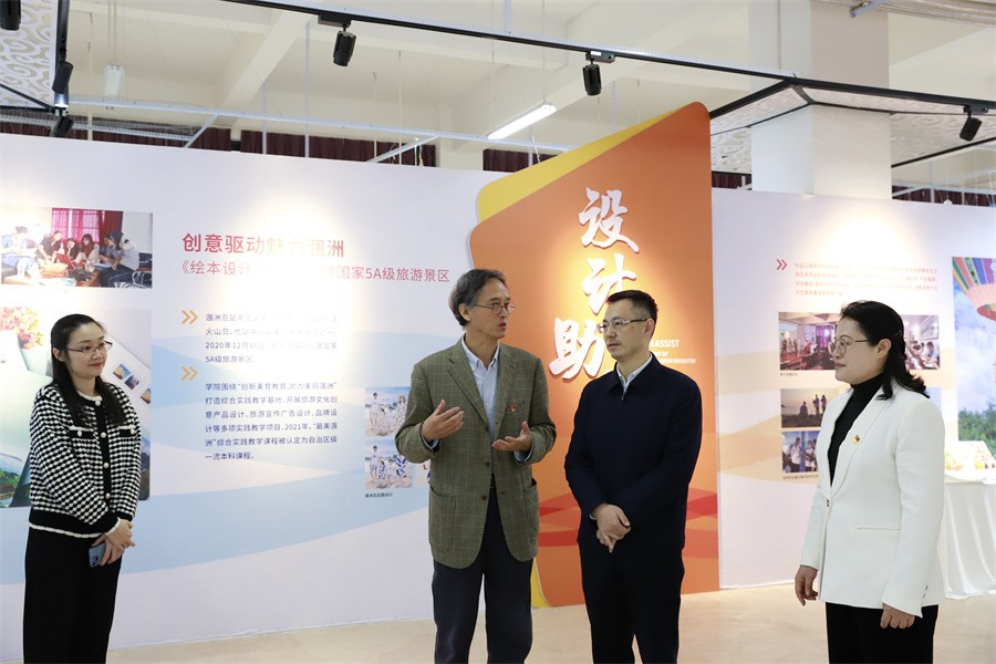 汇报会前,童晓晖一行参观了我校“校政企行深度融合服务地方经济发展”展厅,了解学校在校企合作、服务地方经济建设的情况。