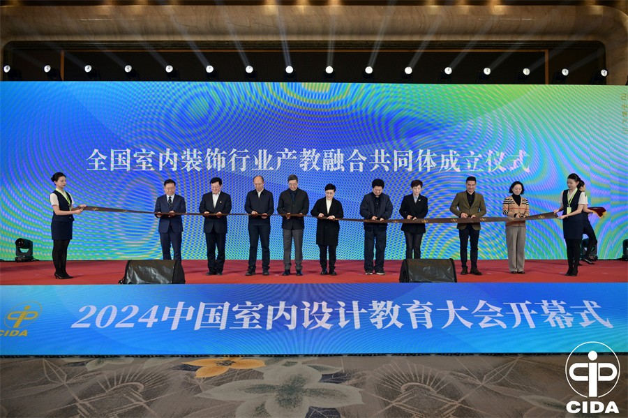 据悉,此次会议共有来自全国各省市院校的1000多位师生代表和知名企业代表、行业协会代表到现场参会。大会由2024中国室内设计教育大会开幕式、全国室内装饰行业产教融合共同体成立仪式、2023全国院校室内设计技能大赛颁奖仪式、2023年度室内设计1+X 工作总结表彰仪式、室内设计国际教育发展专家论坛暨学术研讨会、全国室内装饰行业产教融合共同体第一次工作会议、2024全国室内设计职业教育成果展和相关院校室内设计优秀经验案例交流等多个部分组成。大会围绕产教融合教育主题,旨在汇聚企业和院校等多方力量共育人才。