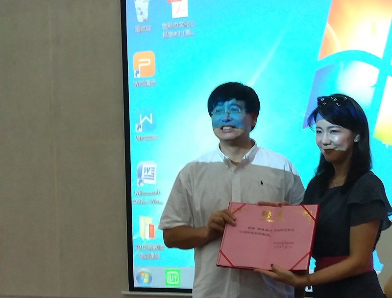 2018年9月6日上午,于西校区伦理楼107大讲堂,我校副校长郑超诚聘日本色彩大师北畠耀先生为我校名誉教授,诚聘田森恭子女士为我校教授,并分别颁发了聘书。