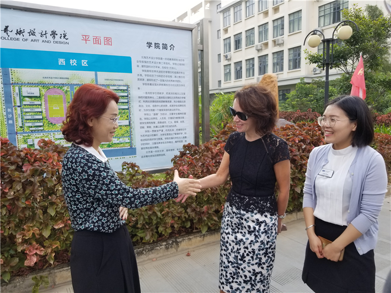 北海市委常委、宣传部部长、副市长黄江与英国德比大学常务副校长Judith握手接见
