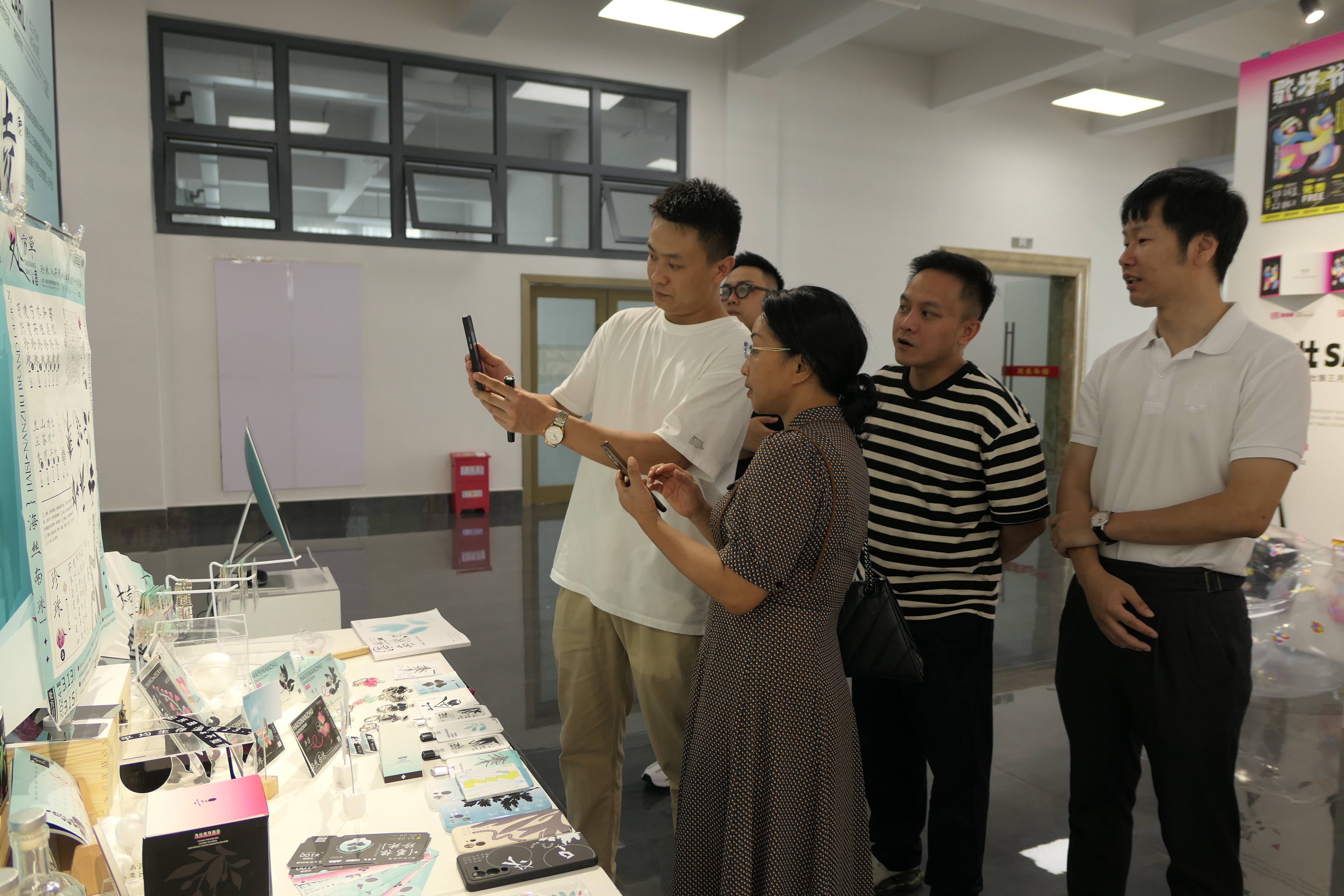 通过此次三方合作,学生们不仅在课程中得到了充分的锻炼,顺利完成了实习,并在课程结束后举办了结课展览,展示了他们在项目中的学习成果和设计作品。6月19日上午,海城区文旅局书记陈丹玲、广西丘山文化创意有限公司总经理伍岳与公司高管徐雅斯光临我校,并在学院视觉传达设计专业实验室副主任岳沛龙、宋超和教研室副主任石宏伟的陪同下,参观了学院视觉传达设计专业2020级品牌设计课程作品展。陈丹玲书记和伍岳总经理对学生的成果给予了高度评价,对众多作品的实际应用落地潜力表示肯定。