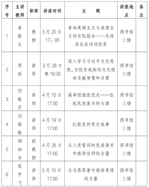 为继承和发扬老一辈革命家面对困难,奋勇直前的精神,不断增强中国特色社会主义的道路自信、理论自信、制度自信、文化自信,提高当代大学生思想道德素质,增强爱国主义教育,图书馆联合马克思主义学院继续开展红色知识专题讲座,给广大师生以知识的汲取、心灵的震撼、精神的激励和思想的启迪,