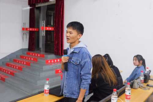 首先由产品1701的张齐进行发言。张齐就在大学生活的方向,历程提出建议,并鼓励同学们在生活中发现美。视觉1817的瞿琛波,首先为同学们分享的是他在这两年大学中的经历以及自己在学习过程中所遇到的问题,他认为同学们应为自己树立一个目标,保持头脑风暴的习惯,并且要勤于咨询老师。