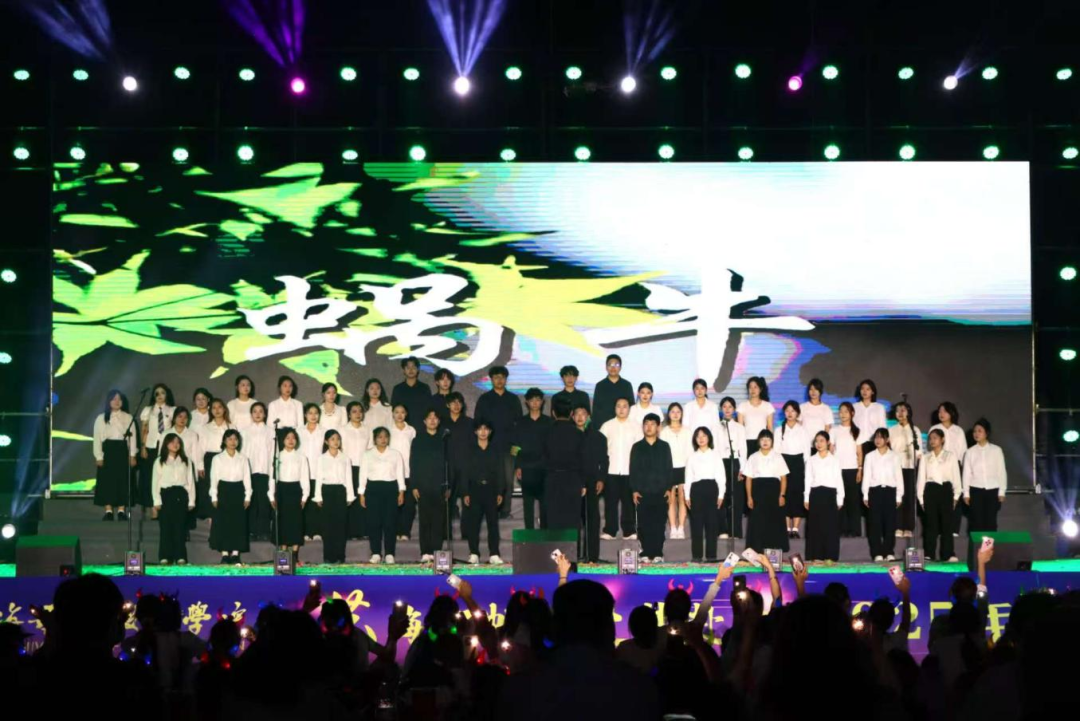 朗诵+舞蹈节目《站在未来的路口》 合唱节目《蜗牛》为晚会表演画上圆满句号。歌曲以蜗牛为喻,传递出坚持不懈、追逐梦想的精神,激励着每一位学子在未来的道路上,心怀梦想、勇往直前,终能实现自己的人生价值。