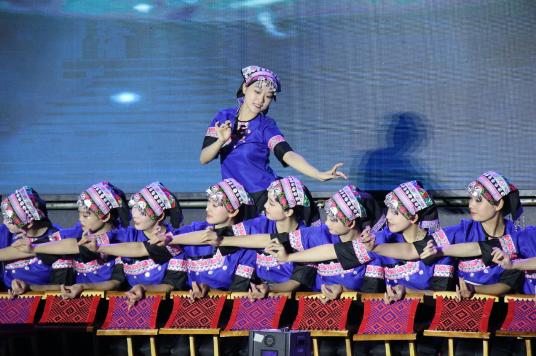 舞蹈节目《锦绣十八洞》中,舞者们凭借扎实的舞蹈功底和精湛的技艺,把灵动的舞姿与优美的旋律完美融合,伴随着头上银饰清脆的叮铃声,每一个动作都流畅自然,展现出独特的艺术魅力。