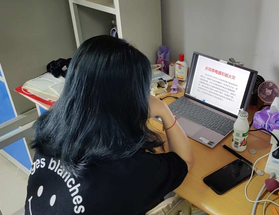 宿舍消防隐患,防范是关键。班处长以2008年上海商学院火灾和我校2010年5月东校区某宿舍发生的局部火灾为例,说明火灾的破坏性和严重性。班处长指出,有研究表明,95%以上的火灾是由于违规使用大功率电器引起,学校学生宿舍严禁使用违规电器。每学期学工处都会联合保卫处等部分对学生宿舍开展不定期的消防安全排查,消除宿舍安全隐患,保障广大师生安全。