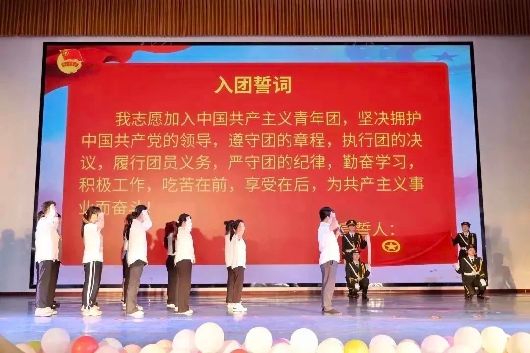 在团委书记唐良春同志的带领下进行新老团员入团宣誓仪式,铿锵有力的誓词在礼堂中久久回荡,这不仅仅只是一段简单的誓言,更是我们砥砺奋斗的决心。