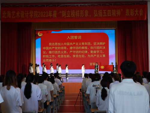 在表彰大会上,党委副书记陈毅华宣读了北海艺术设计学院2023年度“树立榜样形象 弘扬五四精神”五四表彰的决定。表彰建筑与环境艺术学院环境设计专业2106团支部、设计艺术学院视觉传达专业2234团支部等29个团支部获得“五四红旗团支部”,黎训东、龙嘉欣等178名同学获得“优秀团干部”称号,谭培洋、李佳俏等218名同学获得“优秀共青团员”称号。