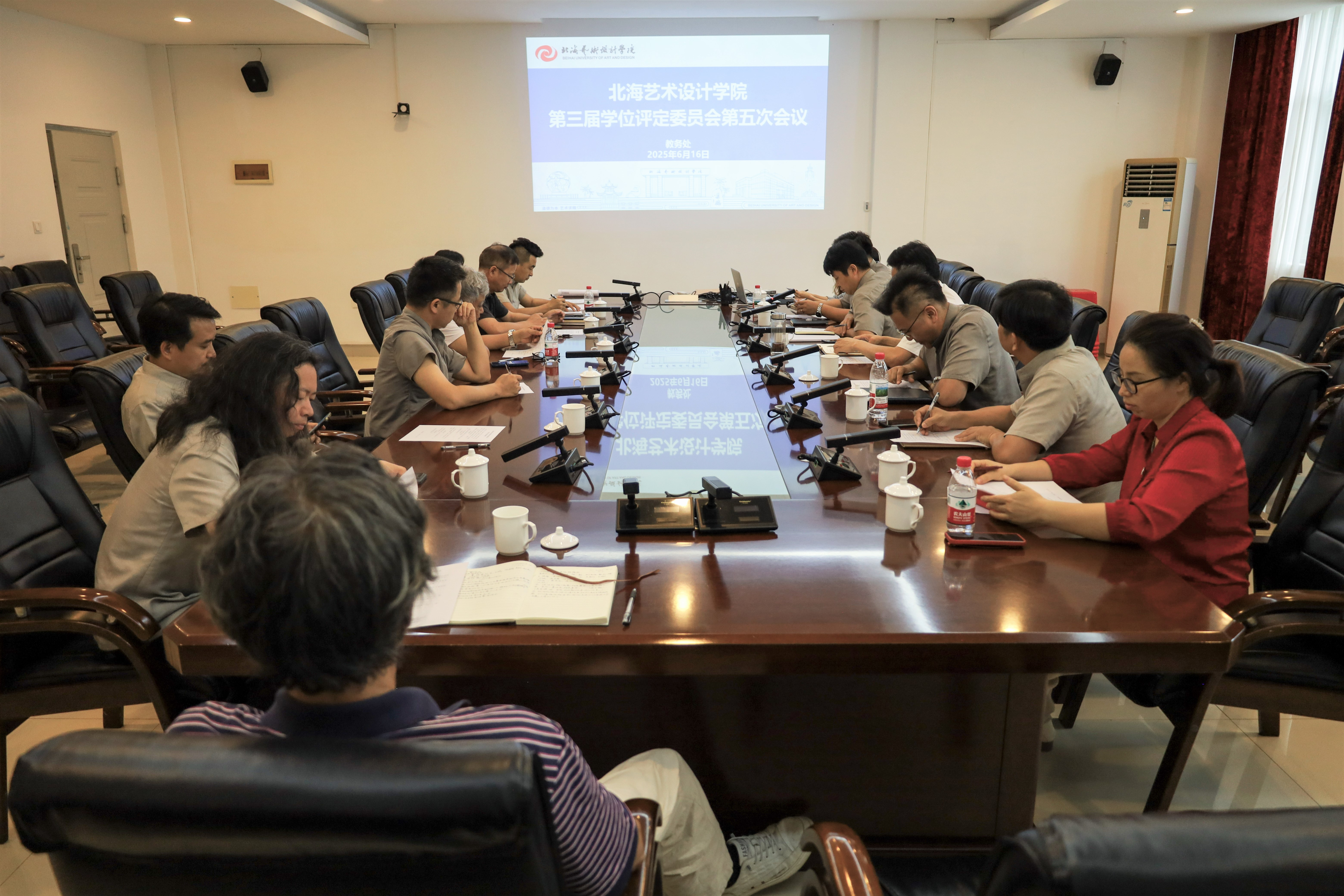 2025年6月16日,我校在行政楼212召开了北海艺术设计学院第三届学位评定委员会第五次会议,审议2025年6月毕业生学士学位授予事宜。学位评定委员会共15人出席会议,教务处相关人员参加会议。