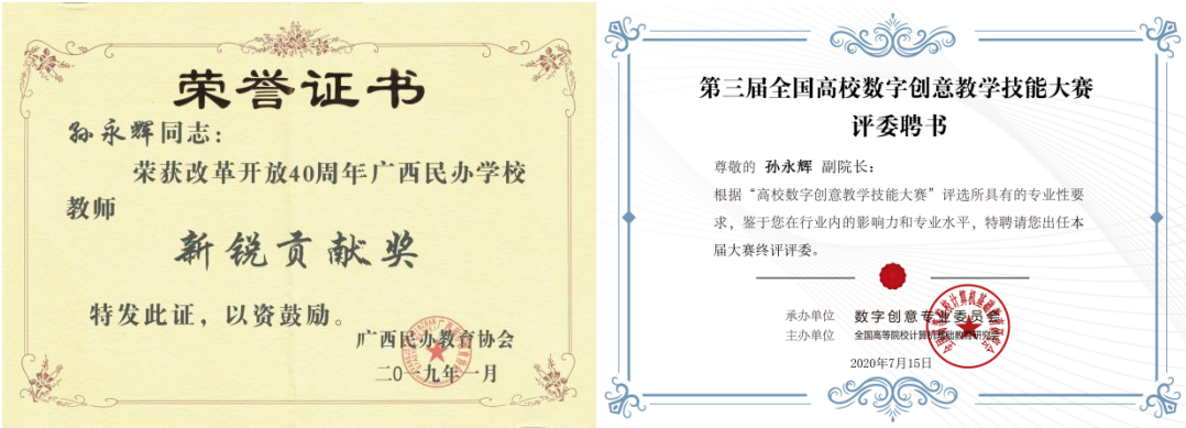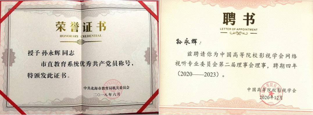 勤耕科研,收获满满,注重转化服务地方;项目引领,实践见真知,精心育人。以理性的思辩致力于科研,用无私的奉献执着于教学,他就是孙永辉老师,现任动画与传媒学院院长、中国高等院校影视学会理事、中国高等院校影视学会数字艺术与动画专业委员第二届理事会理事、中国高校影视学会网络视听专业委员会理事、广西影视艺术家协会专家、北海市科协七届委员会委员。