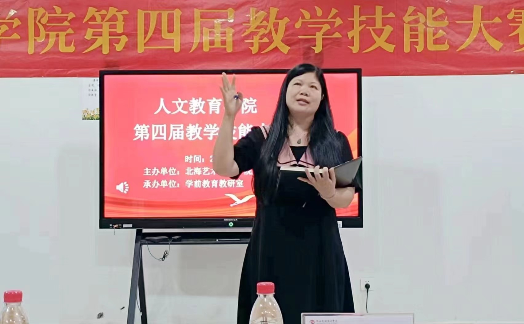 以赛促学、以赛促教、以赛促研,为发挥竞赛对提高职前教师教学技能的引领作用,提高专业人才培养质量,展示学生的专业技能和风采,2024年5月6日至10日,人文教育学院第四届教学技能大赛在西校区4栋103室举行。海城区第一幼儿园园长罗倩,银海区机关幼儿园园长杨文波,人文教育学院院长熊秀峰、副院长李谦等领导、嘉宾出席比赛开幕式。