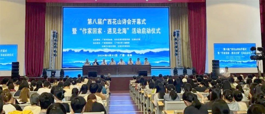 5月20日-21日,第八届广西花山诗会暨“作家回家·遇见北海”活动在我校举办。来自区内的作家、诗人、评论家及学校师生共500余人参加活动。