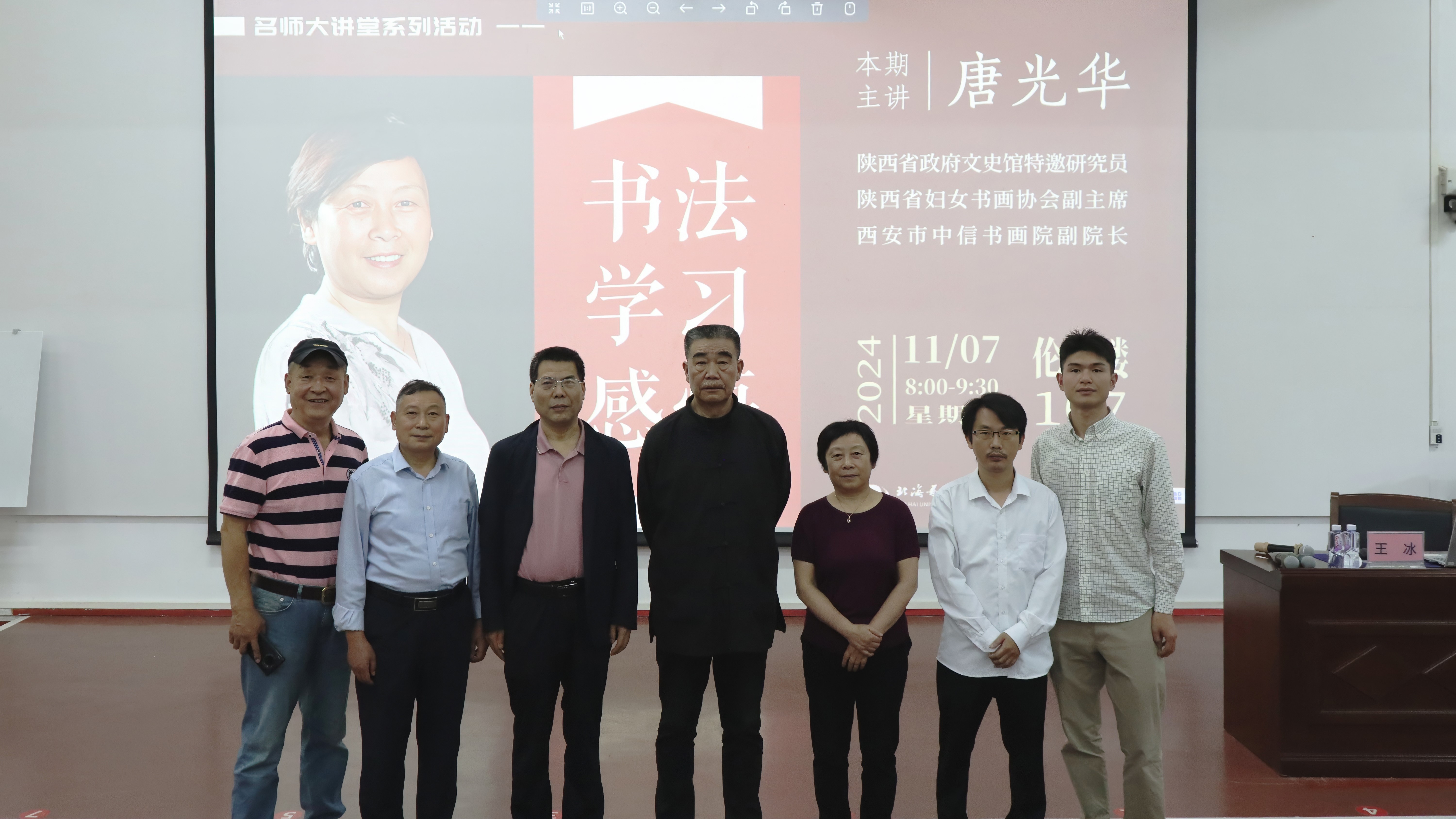 2024117日上午8:009:30,备受期待的名师大讲堂系列活动在伦理楼107教室准时举办。本次讲座邀请了陕西省政府文史馆特邀研究员、陕西省妇女书画协会副主席唐光华女士担任主讲嘉宾,为师生们带来了题为“书法学习感悟”的精彩分享。