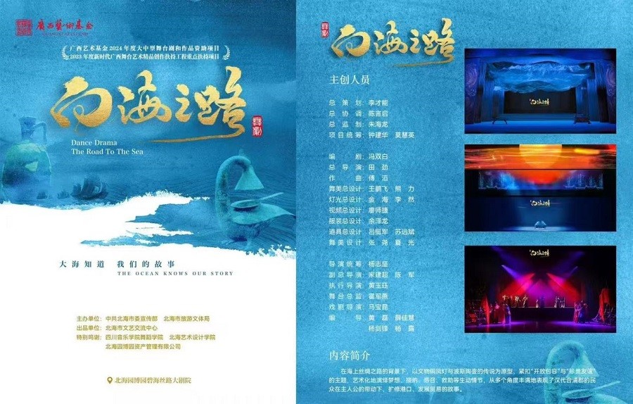 近日,由中共北海市委宣传部、北海市旅游文体局主办,北海市文艺交流中心出品的舞剧《向海之路》在北海园博园大剧院上演。我院优秀毕业生农蕊宁、胡星、庞青春、范孝凯,大四年级舞蹈表演专业学生马一萌、谭英明、何秋霖萌参与了此次演出。