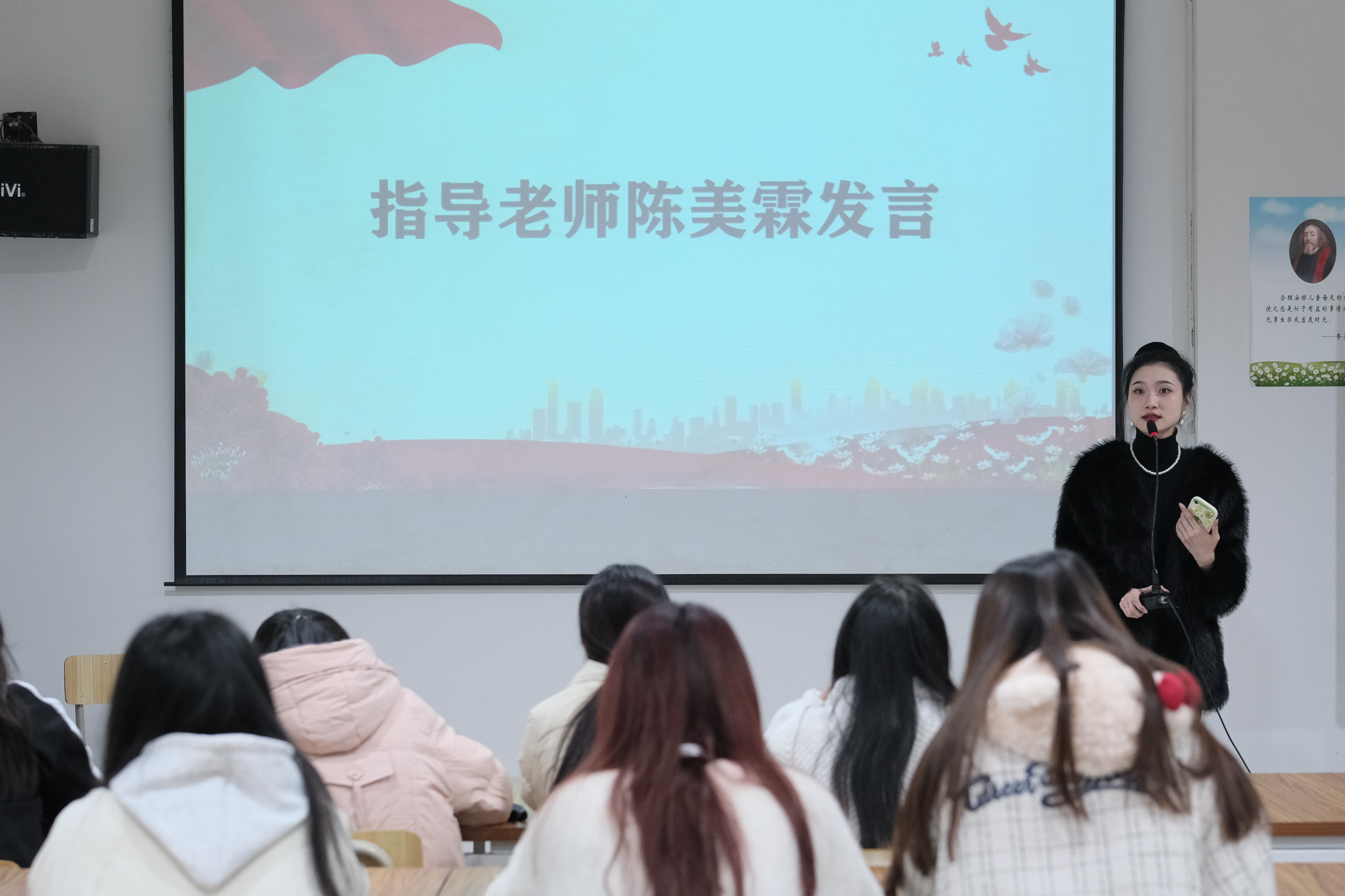 紧接着,陈美霖老师发表讲话。她对教育学院团总支这一学期的辛勤付出和取得的成绩给予了肯定。同时,她指出目前团总支工作中存在的问题与不足,并给出了具体的整改建议。