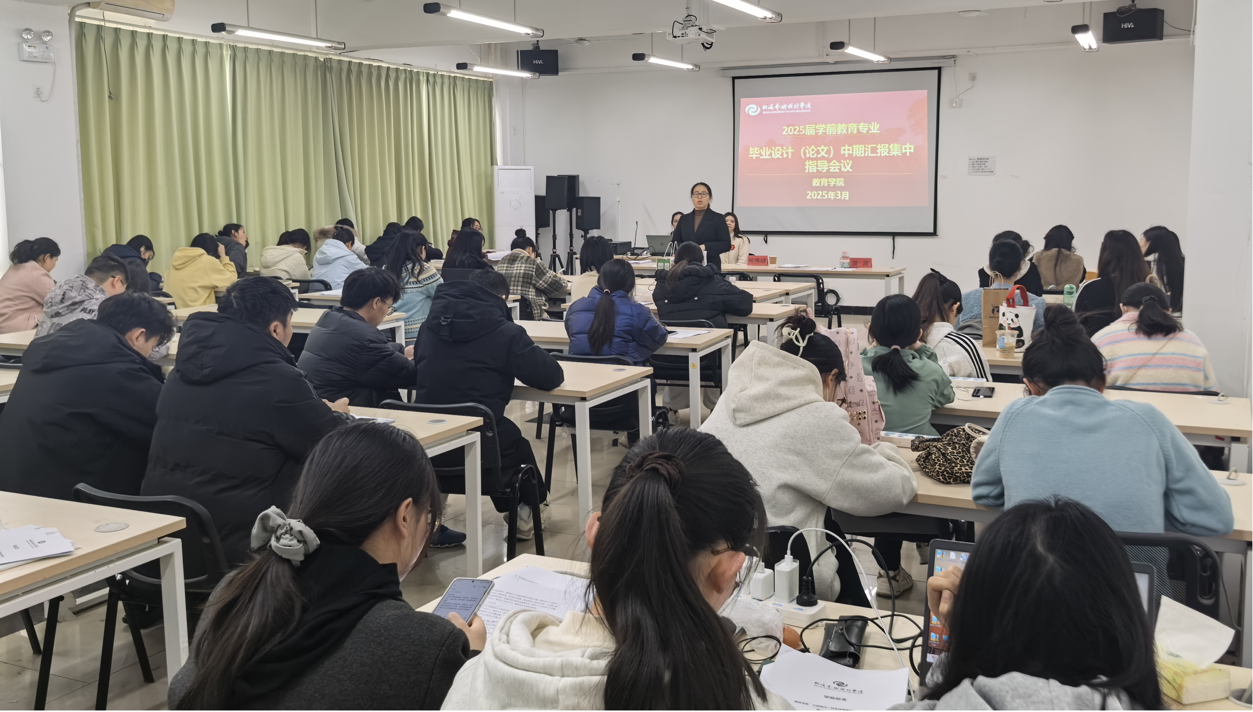 艺术教育专业和学前教育专业于2025年3月11 日至13日开展毕业论文中期汇报工作,参与答辩的老师包括院长熊秀峰、艺术教育教研室副主任周劲志、教务办主任黄海林、艺术教育专业老师赵华教授、学前教育专业雷蕊老师。同时,为了更好地帮助学生完成学业和就业,,各位老师于3月14日进一步深入地开展了个人论文和就业指导工作。
