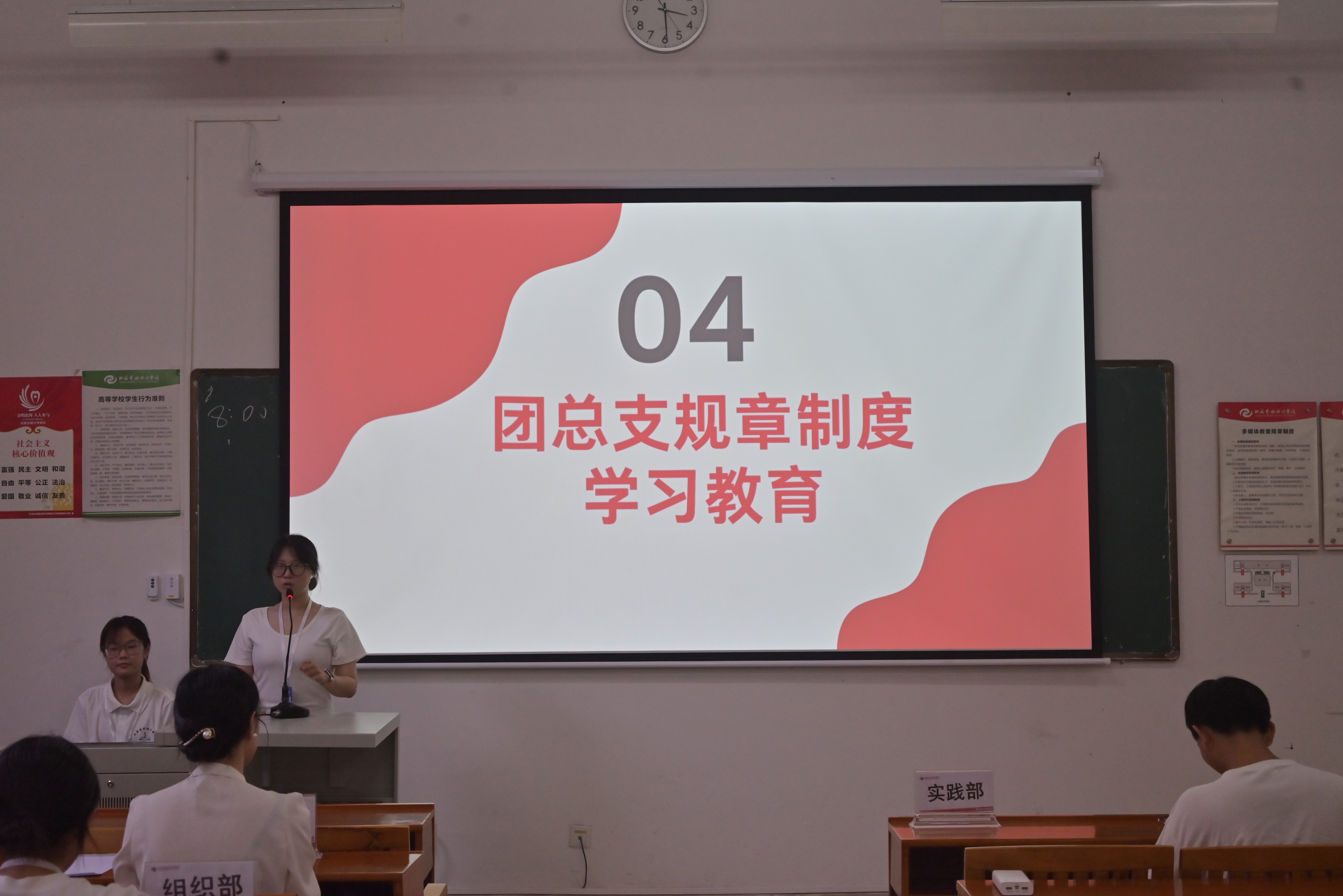 会议第四项议程,由主席团副主席陈杉杉组织团总支规章制度学习教育。通过本次学习教育,团总支明确权责边界、规范工作流程、提升运转效率,保障团务工作有序推进;同时,团总支成员增强规则意识与组织归属感,进一步明确权利义务、养成自律习惯。本次学习教育更能为青年群体营造公平严谨的集体氛围,引导其树立正确价值观,为新时代青年成长提供坚实的制度保障。