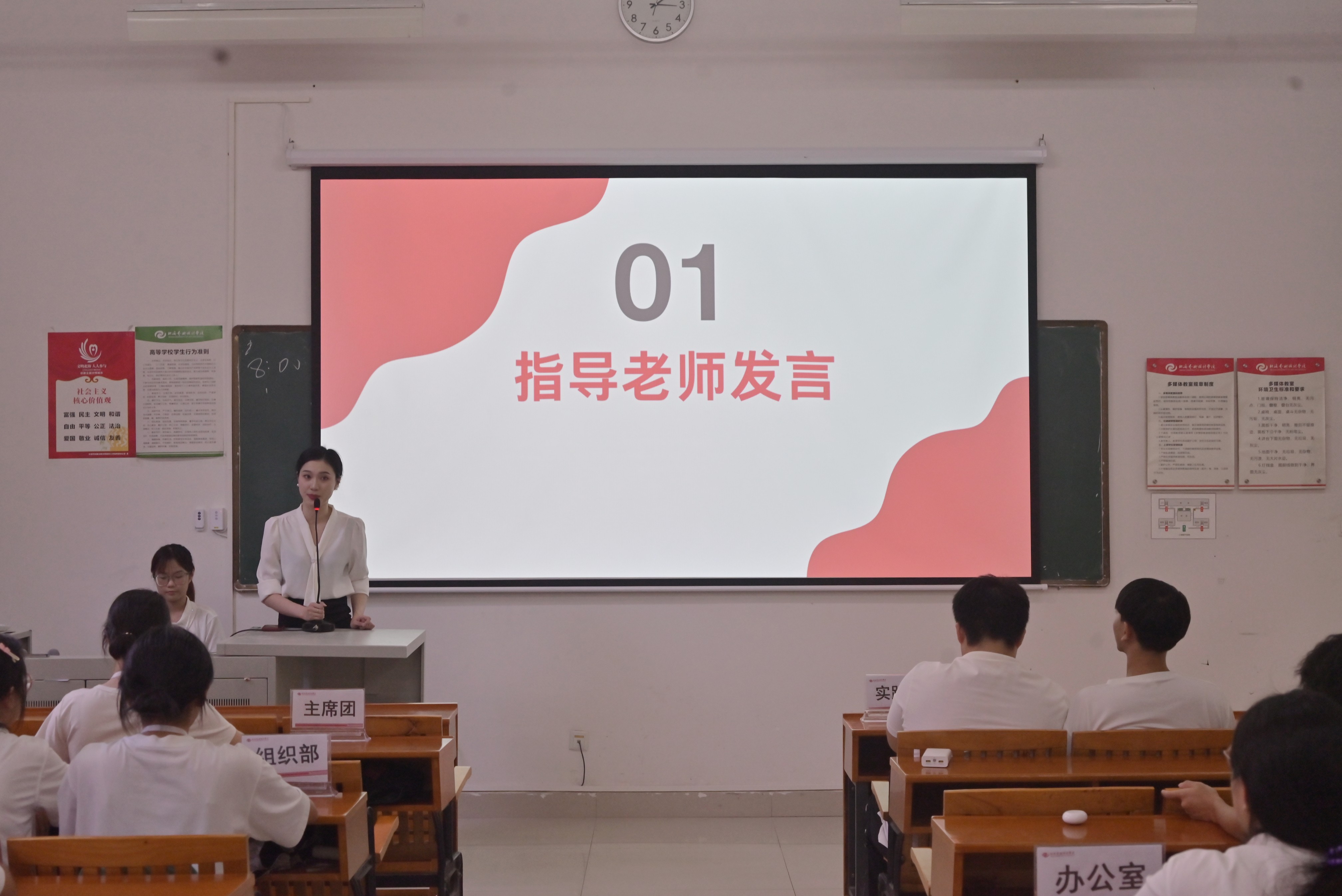 会议第一项议程,由学院团总支书记陈美霖发言。她就团总支工作提出两项要求:一、坚守服务初心。各成员需以同学需求为导向,坚守“为同学、为学院服务”的初心,将服务工作落到实处。二、强化协同落实。各部门要打破壁垒、加强协作,确保活动策划、执行、宣传全流程高效衔接。