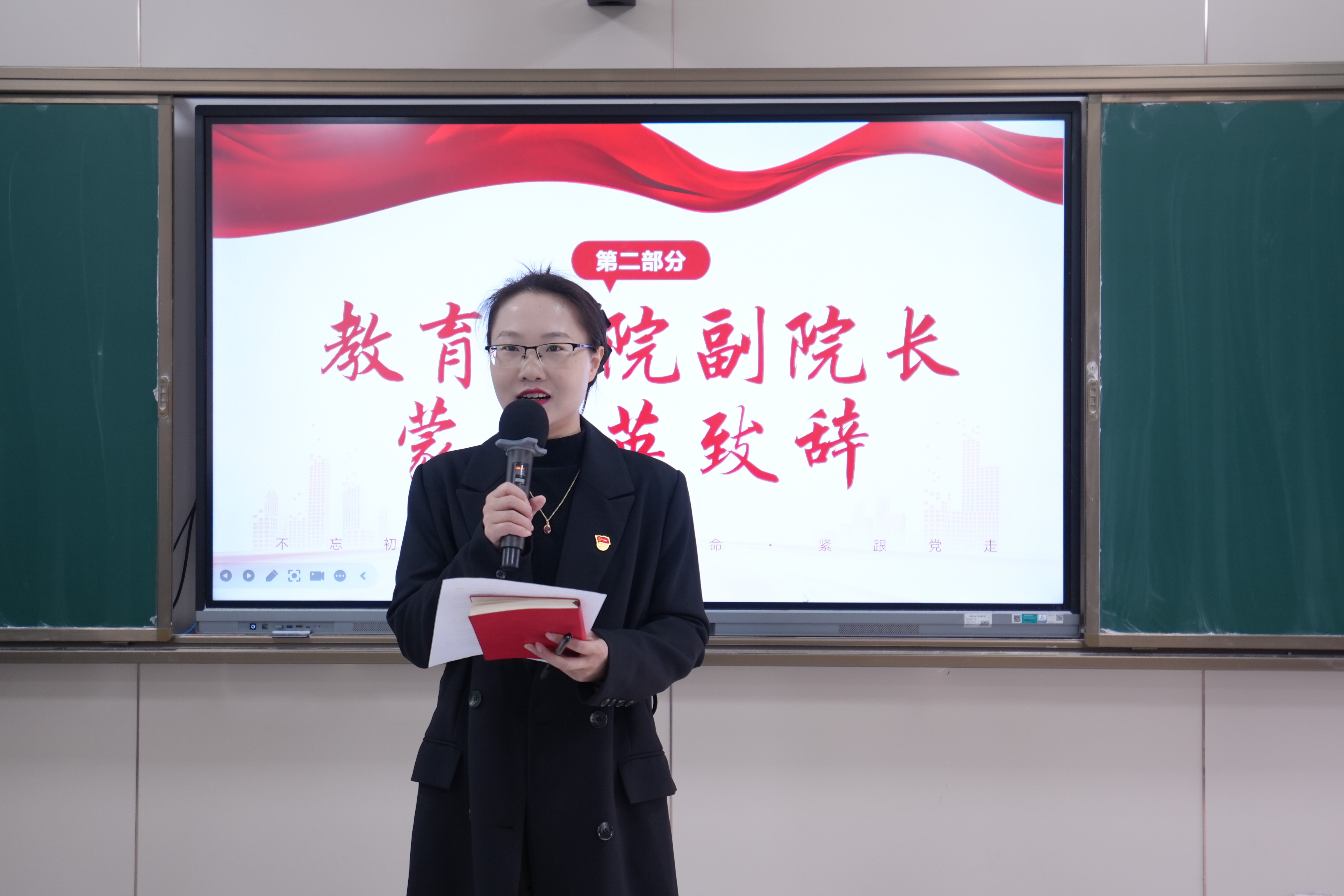 为深入学习贯彻习近平新时代中国特色社会主义思想,落实立德树人的根本任务,着力培养信仰坚定、能力突出、勇于担当的青年马克思主义者,12月14日,哲学学院与教育学院在东校区觉悟楼401教室联合举办2025-2026学年“第二期青年马克思主义者培养工程”活动。哲学学院党支部书记谢伟、教育学院副院长蒙剑英、教育学院团总支书记陈美霖、哲学学院谢佩玲老师出席仪式,哲学学院与教育学院团员及学生干部参加。本次开班仪式由哲学学院吴玥同学和教育学院丁朝旭同学共同主持