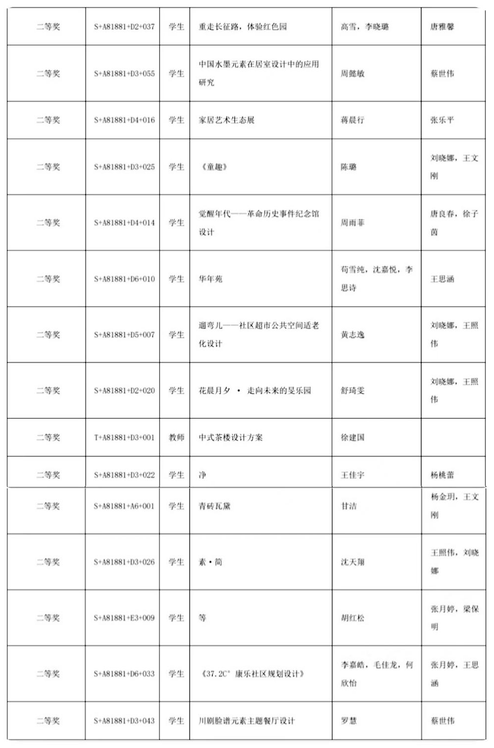 (二等奖获奖名单)