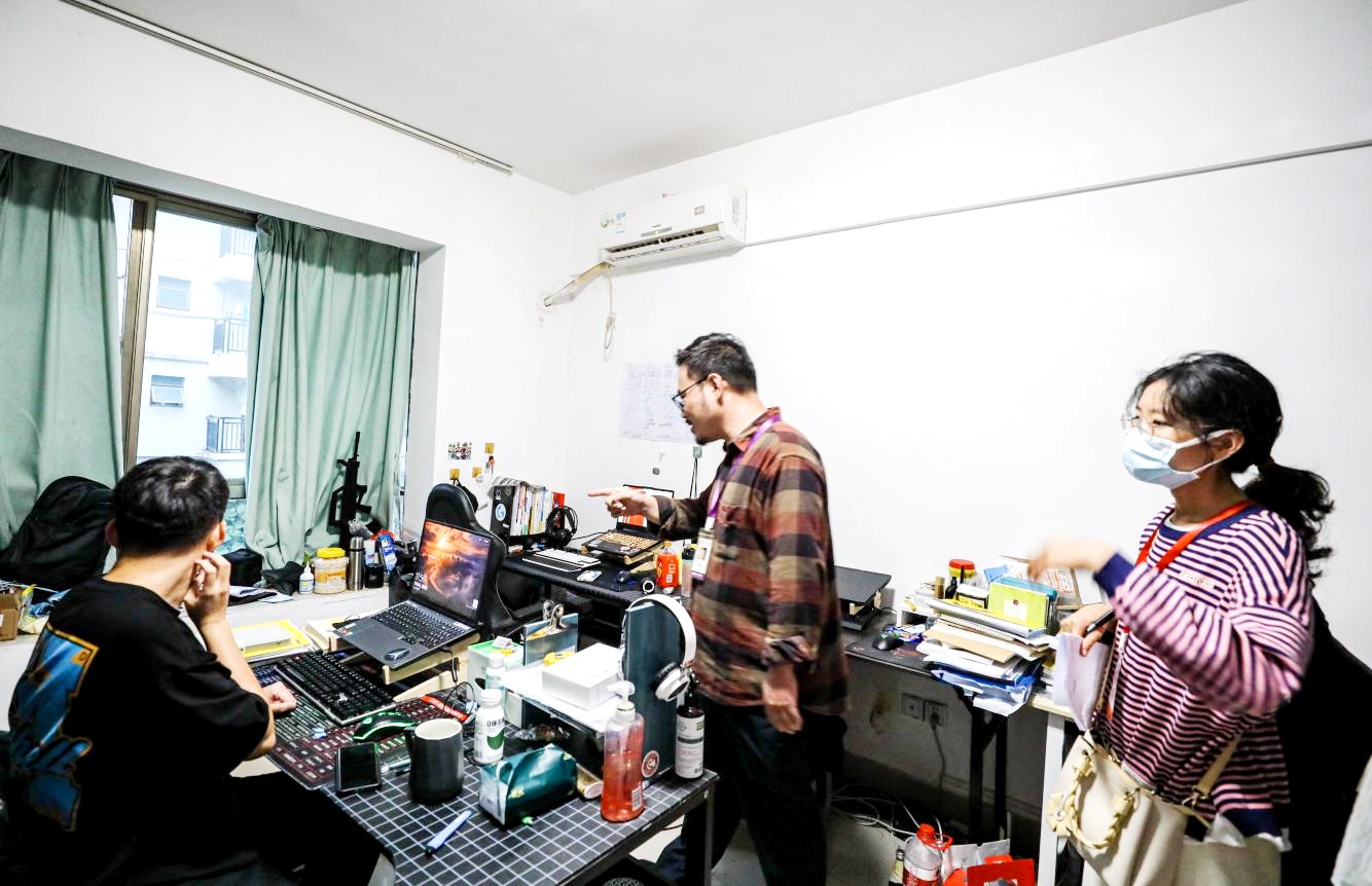 (建筑与环境艺术学院副院长王文刚和教研室主任张春东走访宿舍)