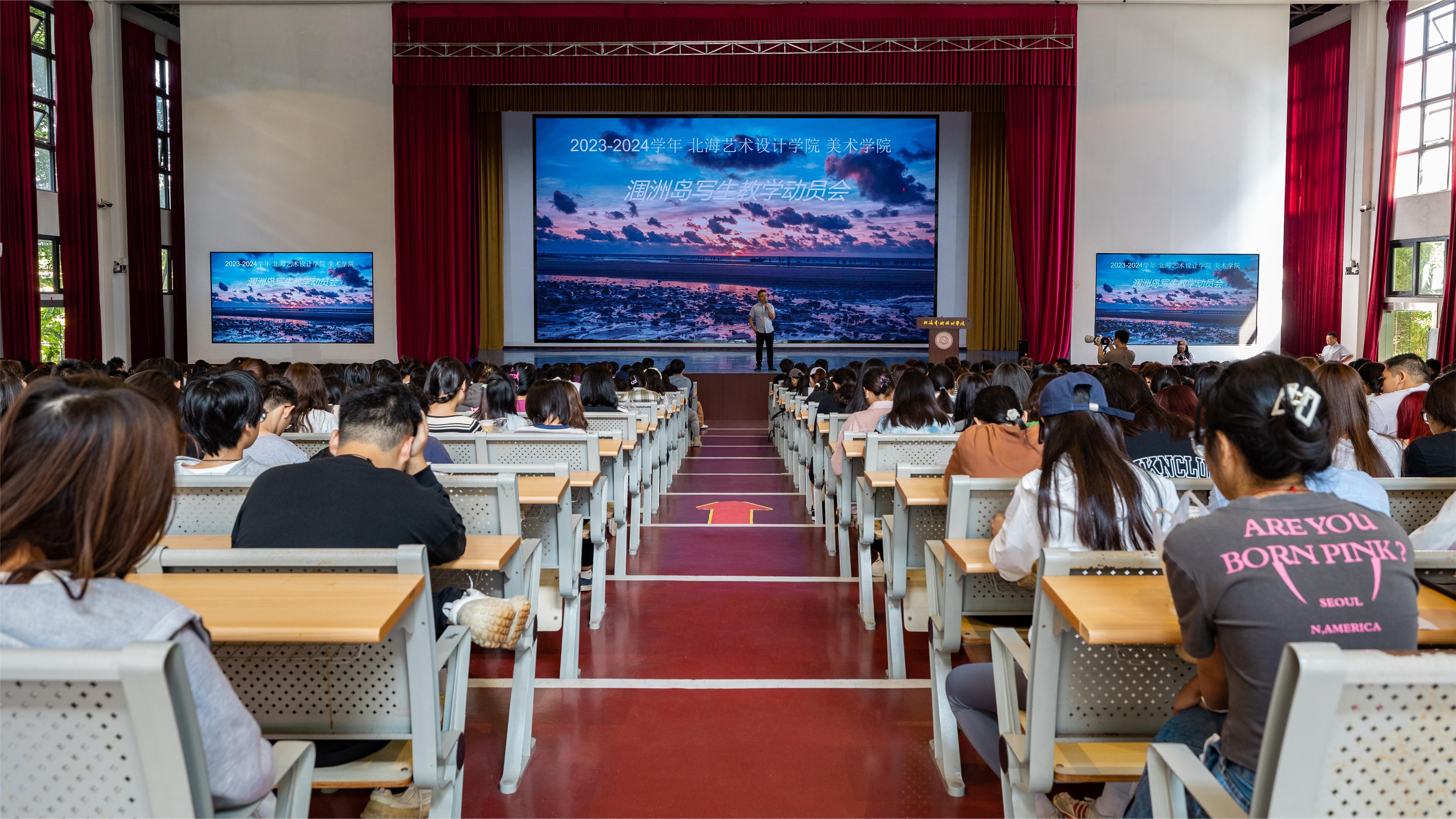 2023年10月15日上午,美术学院2023级全体同学于西校区大礼堂参与2023级学生涠洲岛写生实践动员大会。本次会议由美术学院副院长龚为主持,副书记鲁明阳、副院长殷声、基础教研室主任刘培培、写生课程全体指导教师出席参加。