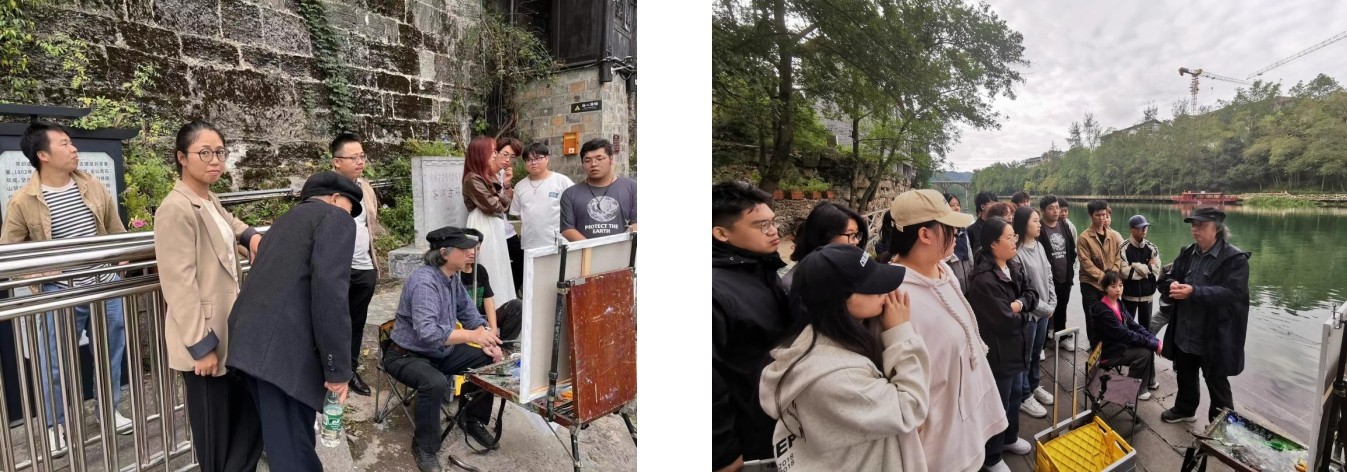 专业写生是年级学生进入专业领域学习感受最为直接的一门课,学生对本专业材料媒介的理解使用基本熟悉的基础上,为方便学生直观地掌握自己所在专业艺术创作的基本特性,曲湘建教授以及专业教师分别为同学们进行了示范讲解。