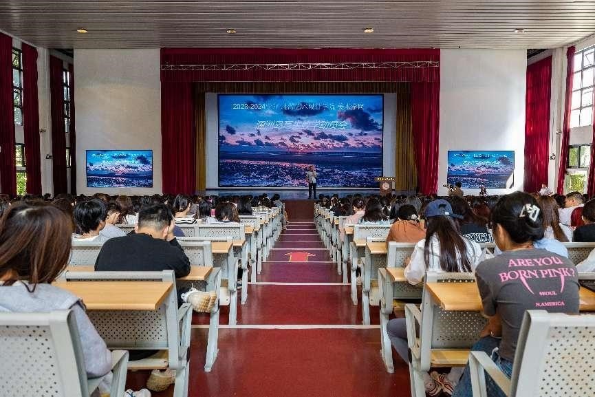 20231015日,美术学院召开涠洲岛写生教学动员会议,由美术学院院长龚为主持,其中针对上岛安全、写生流程、工具材料、涠洲岛动植物等注意事项做出详细介绍,强调上岛安全,并祝愿同学们圆满完成写生课程。