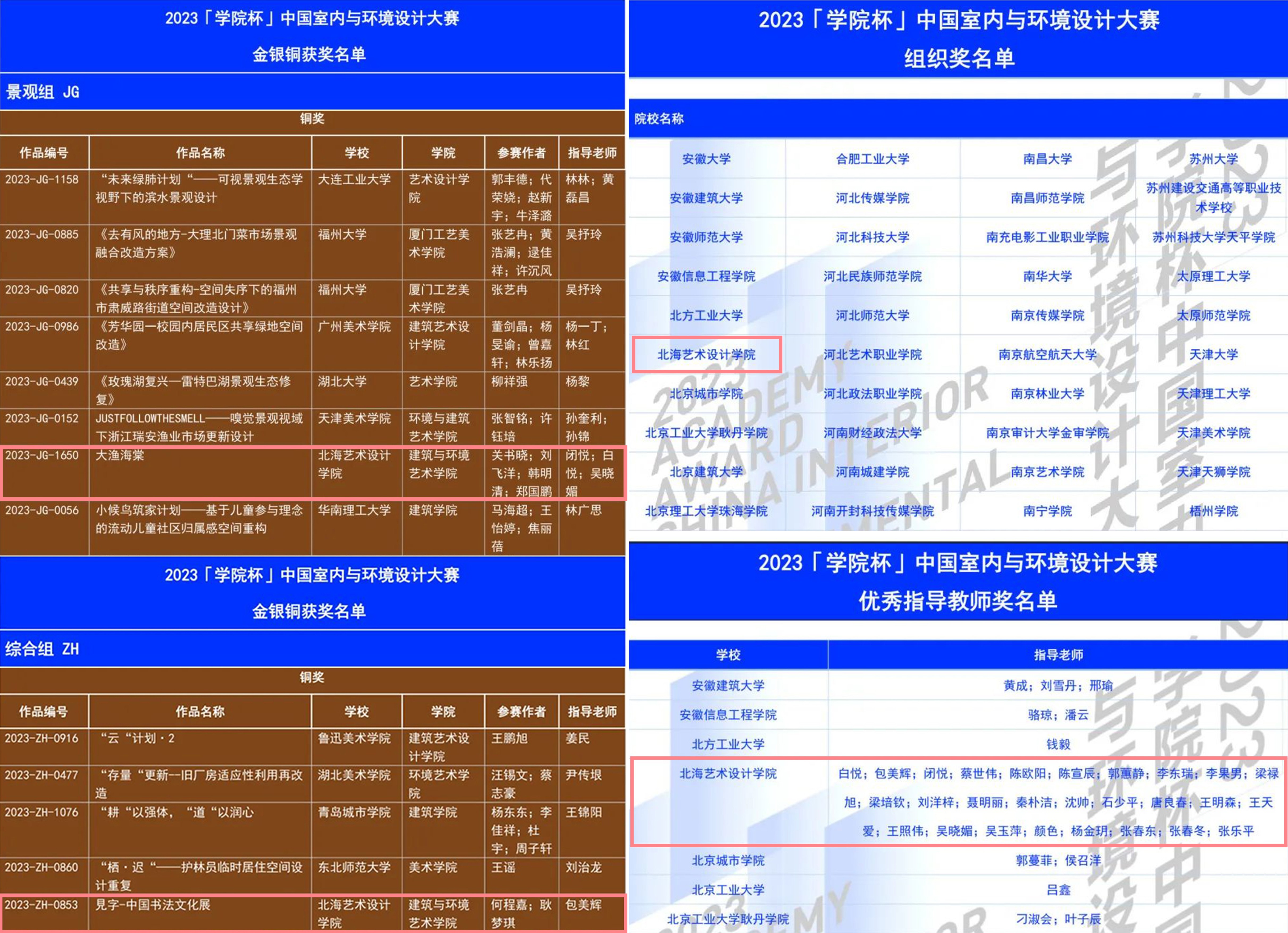 北海艺术设计学院建筑与环境艺术学院在近日揭晓的2023年“学院杯”中国室内与环境设计大赛中再获佳绩。