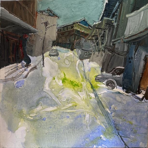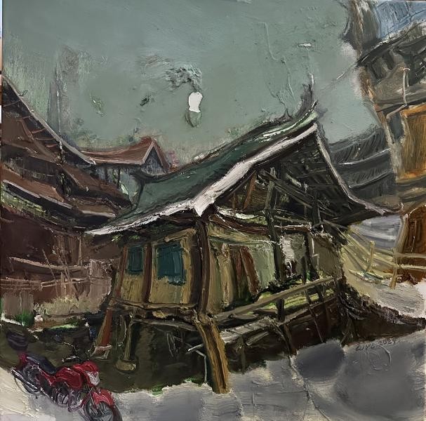 本次展览的核心主题是侗族建筑,力图通过绘画这一形式探讨侗族建筑的文化价值、空间符号与情感表达。展览以当代侗族建筑形式为灵感,结合现象学理论与表现主义的艺术手法,将侗族建筑的结构、形式、象征性以及人类生活的内在联系巧妙呈现。作品中的侗族建筑不仅是作为空间存在,而是作为情感的载体,承载着文化记忆与民族精神。