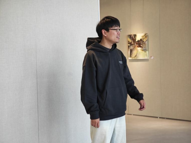 参观展览的学生代表叶钧皓在致辞中分享了他作为参与者的感受。他认为:这些作品不仅仅是在描绘侗族建筑的外观,更是在感知其中蕴含的民族情感。我们都去过三江侗族村落写生,侗族建筑对于我们来说,不仅是一个图像,更是一种情感的共鸣,一种文化的归属感。通过这些作品,王云龙老师不仅在传承文化,也在探索如何将传统元素转化为现当代的艺术语言。