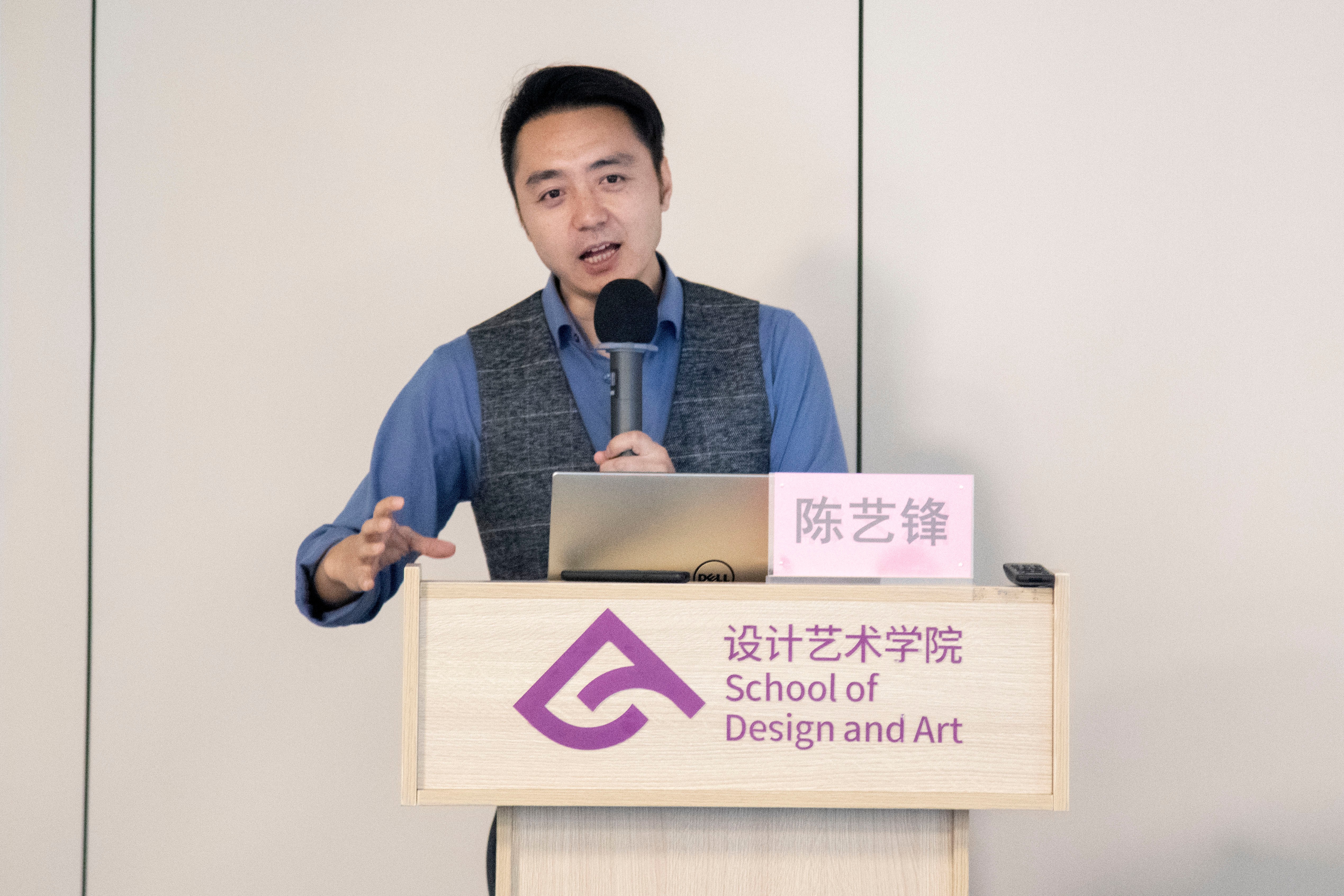 本次培训在设计艺术学院伦理楼408室开展,学院党总支书记黄锦、院长李林平、副院长白建强、实验室主任郑哲瀚及众多教师共同参加,聆听陈艺锋教授的精彩分享。