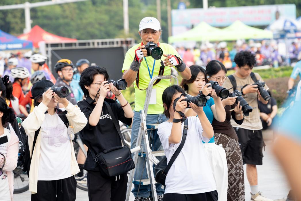 在美术学院副院长殷声老师的组织下,摄影教研室李伟民、何汝鑫、蒋理3位老师与50名学生9月21日清晨6:30自西校区北门集合出发,赴北海园博园参与开幕式并进行现场拍摄与交流。同学们分组行动,运用课堂所学,在不同光线与场景中捕捉骑行选手的精彩瞬间,展现了良好的专业素养与团队协作精神。