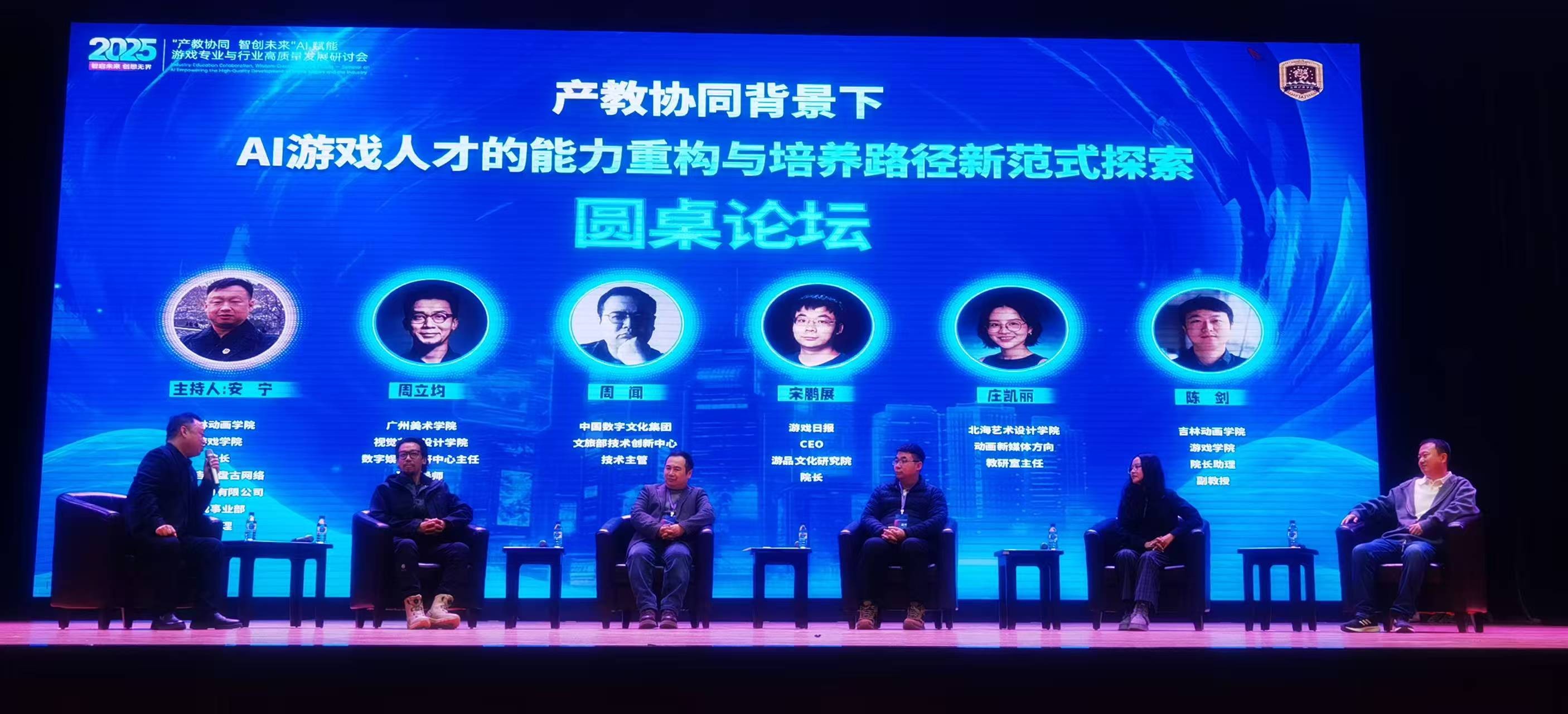 赛事同期举办了“产教协同 智创未来——AI赋能游戏专业与行业高质量发展研讨会”。我院动画专业新媒体方向教研室主任庄凯丽老师应邀参与圆桌对话,围绕“产教协同背景下AI游戏人才的能力重构与价值转化”主题,分享了学院在游戏人才培养方面的创新实践。她表示,面对AI技术的快速发展,专业近年来着力引导大一、大二学生参与行业赛事,学生虽实践经历尚浅,却具备扎实的审美基础与快速学习能力,能灵活运用AI工具进行创意整合。通过将教学置于真实、前沿的产业场景中,有效推动了技术应用与创意表达的融合,缩短了理论学习与行业实践的距离。